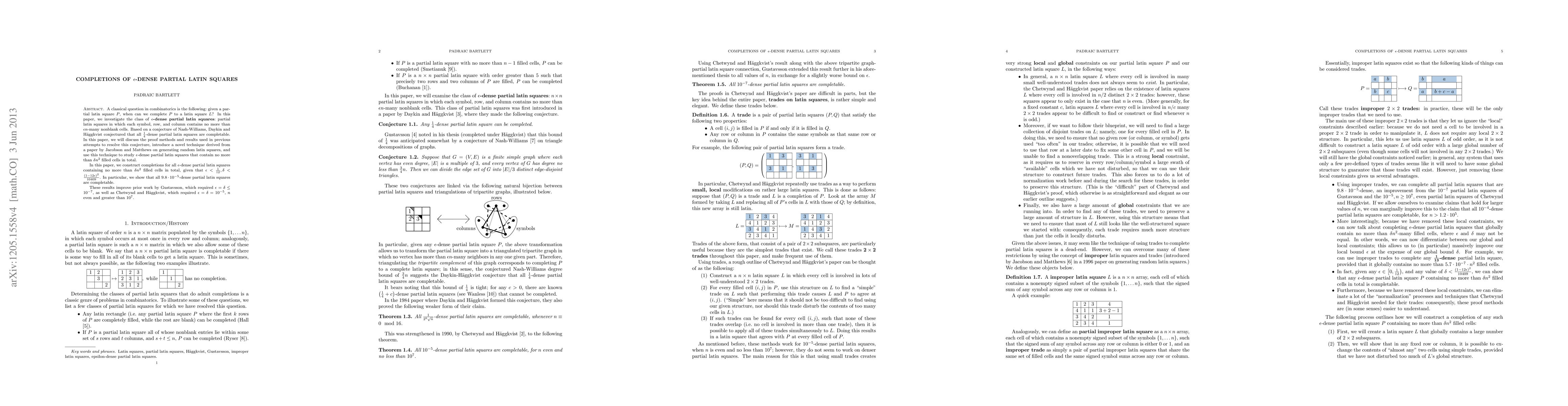 This paper investigates the completion of \leq\epsilon-dense partial Latin squares, introducing a novel technique to prove that all \leq(1/5300)-dense n by n partial Latin squares and all \leq(1/13)-dense n by n partial Latin squares with \leq(8.8*10^(-5)*n^2) filled cells are completable, improving upon previous results.