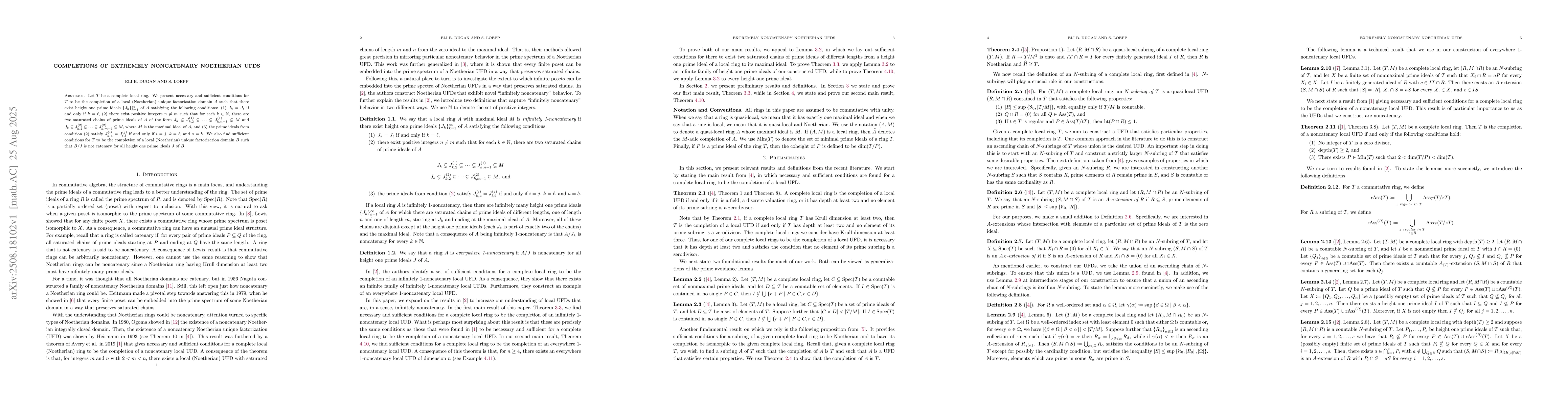 Let $T$ be a complete local ring. We present necessary and sufficient conditions for $T$ to be the completion of a local (Noetherian) unique factorization domain $A$ such that there exist height one prime ideals $\{J_k\}_{k = 1}^{\infty}$ of $A$ satisfying the following conditions: (1) $J_k = J_{\ell}$ if and only if $k = \ell$, (2) there exist positive integers $n \neq m$ such that for each $k \in \mathbb{N}$, there are two saturated chains of prime ideals of $A$ of the form $J_k \subsetneq J^{(1)}_{k,2} \subsetneq \cdots \subsetneq J^{(1)}_{k,n - 1} \subsetneq M$ and $J_k \subsetneq J^{(2)}_{k,2} \subsetneq \cdots \subsetneq J^{(2)}_{k,m - 1} \subsetneq M,$ where $M$ is the maximal ideal of $A$, and (3) the prime ideals from condition (2) satisfy $J^{(i)}_{k,a} = J^{(j)}_{\ell,b}$ if and only if $i = j$, $k = \ell$, and $a = b$. We also find sufficient conditions for $T$ to be the completion of a local (Noetherian) unique factorization domain $B$ such that $B/J$ is not catenary for all height one prime ideals $J$ of $B$.