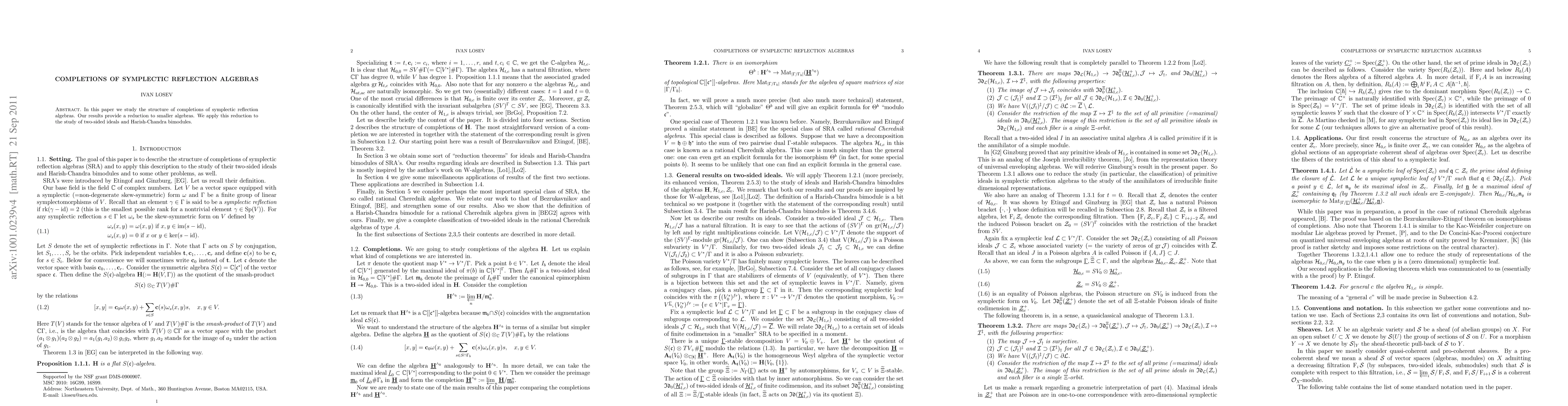This paper investigates the structure of completions of symplectic reflection algebras, demonstrating a reduction to smaller algebras, and applies this reduction to analyze two-sided ideals and Harish-Chandra bimodules.