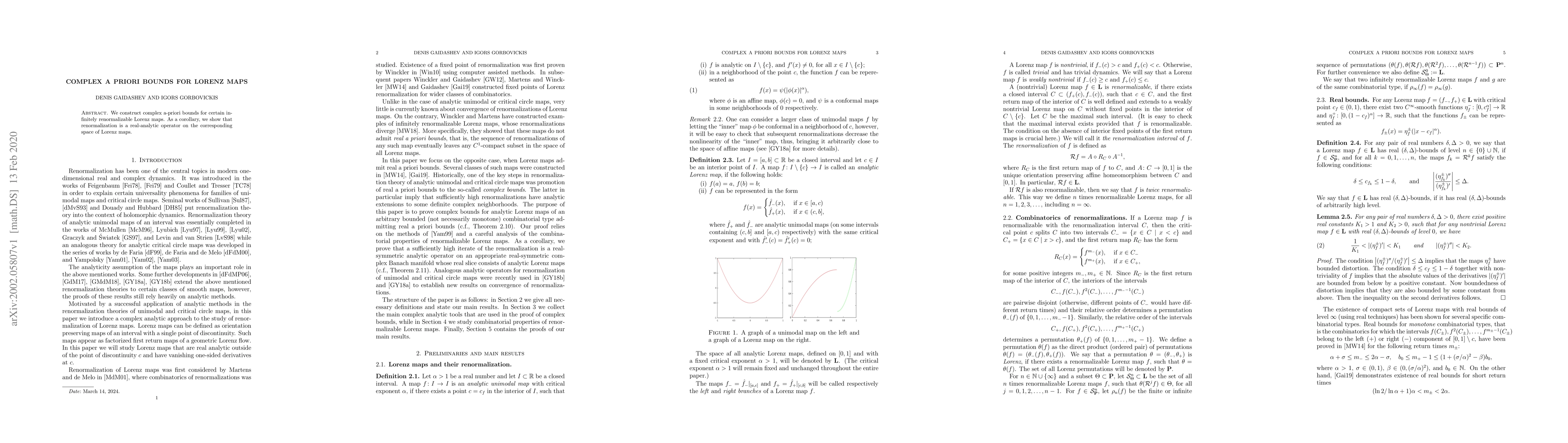 This paper establishes complex a priori bounds for infinitely renormalizable Lorenz maps and demonstrates that renormalization acts as a real-analytic operator on the space of these maps.
