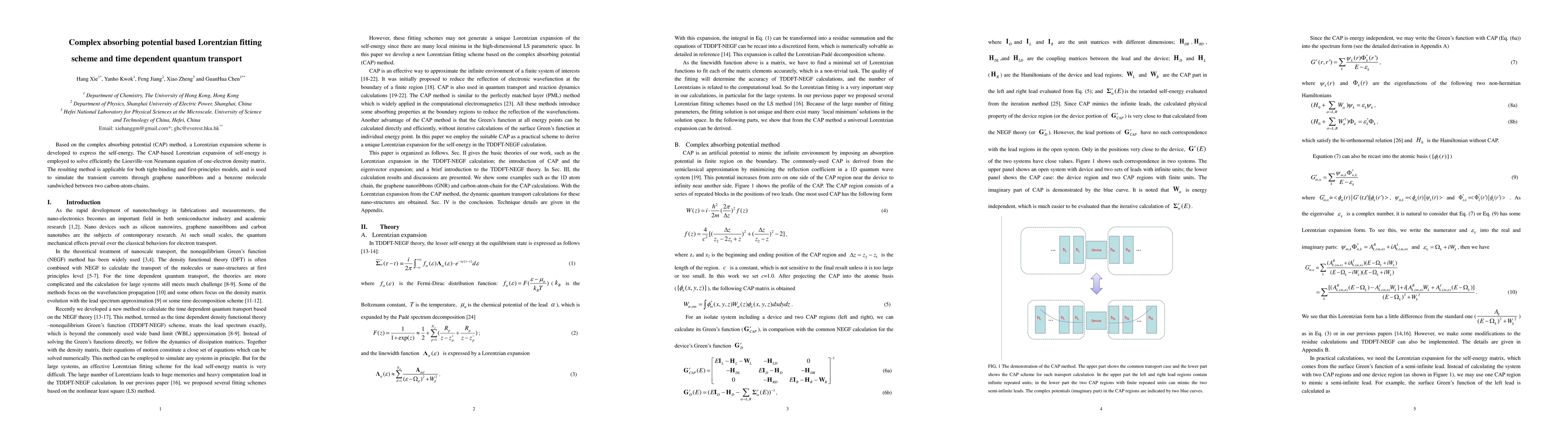 Based on the complex absorbing potential (CAP) method, a Lorentzian expansion scheme is developed to express the self-energy. The CAP-based Lorentzian expansion of self-energy is employed to solve efficiently the Liouville-von Neumann equation of one-electron density matrix. The resulting method is applicable for both tight-binding and first-principles models, and is used to simulate the transient currents through graphene nanoribbons and a benzene molecule sandwiched between two carbon-atom-chains.