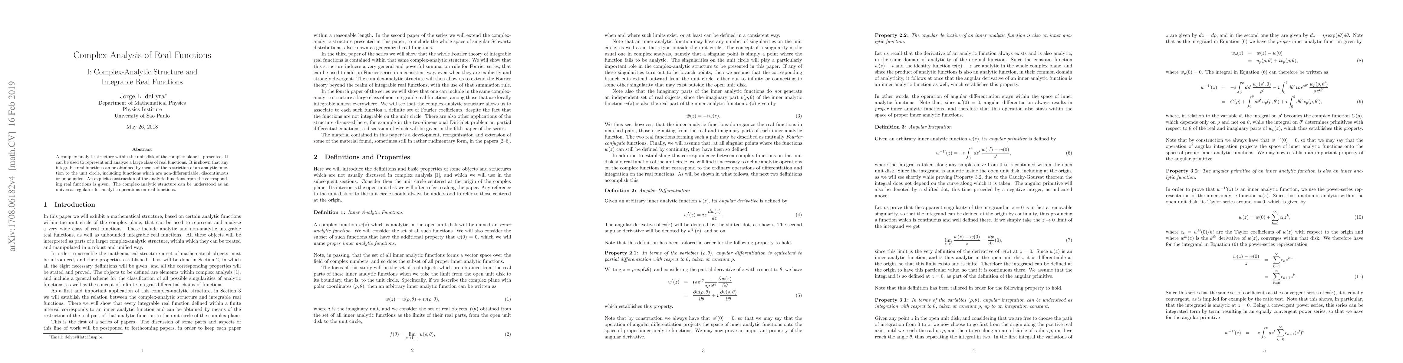 This paper introduces a complex-analytic structure in the unit disk to represent and analyze various real functions, demonstrating that any integrable real function can be derived from the restriction of an analytic function to the unit circle. It provides an explicit method for constructing these analytic functions from real functions.