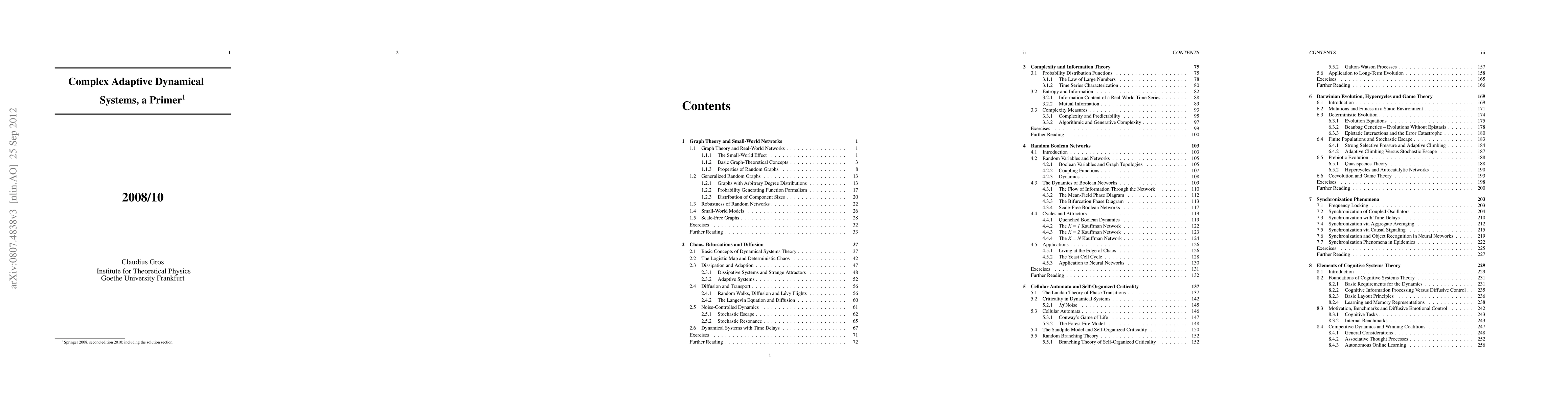 An thorough introduction is given at an introductory level to the field of quantitative complex system science, with special emphasis on emergence in dynamical systems based on network topologies. Subjects treated include graph theory and small-world networks, a generic introduction to the concepts of dynamical system theory, random Boolean networks, cellular automata and self-organized criticality, the statistical modeling of Darwinian evolution, synchronization phenomena and an introduction to the theory of cognitive systems. It inludes chapter on Graph Theory and Small-World Networks, Chaos, Bifurcations and Diffusion, Complexity and Information Theory, Random Boolean Networks, Cellular Automata and Self-Organized Criticality, Darwinian evolution, Hypercycles and Game Theory, Synchronization Phenomena and Elements of Cognitive System Theory.