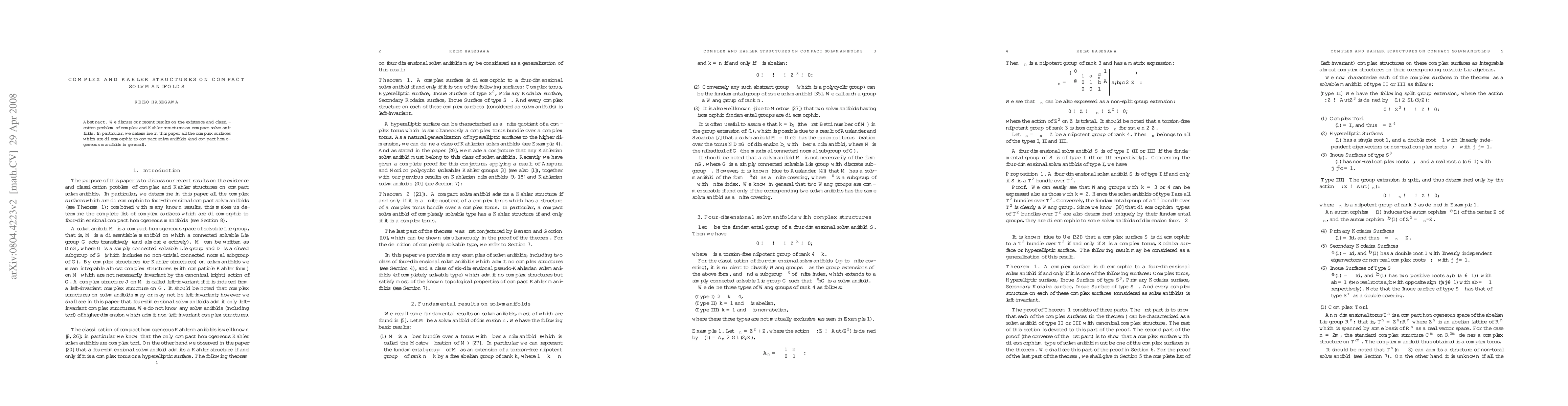 We discuss our recent results on the existence and classification problem of complex and Kaehler structures on compact solvmanifolds. In particular, we determine in this paper all the complex surfaces which are diffeomorphic to compact solvmanifolds (and compact homogeneous manifolds in general).