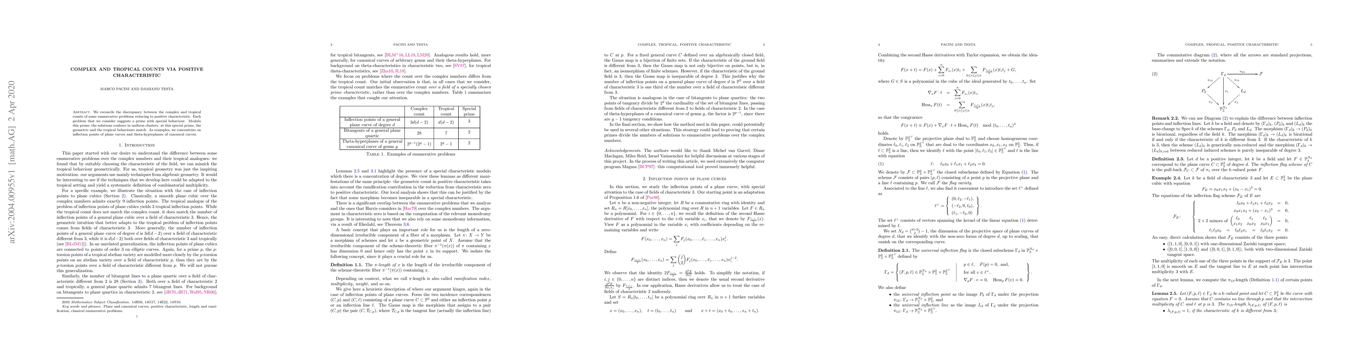This paper reconciles the difference between complex and tropical counts in enumerative geometry by examining solutions modulo a special prime, showing that geometric and tropical behaviors align at this prime. It focuses on inflection points of plane curves and theta-hyperplanes of canonical curves as examples.