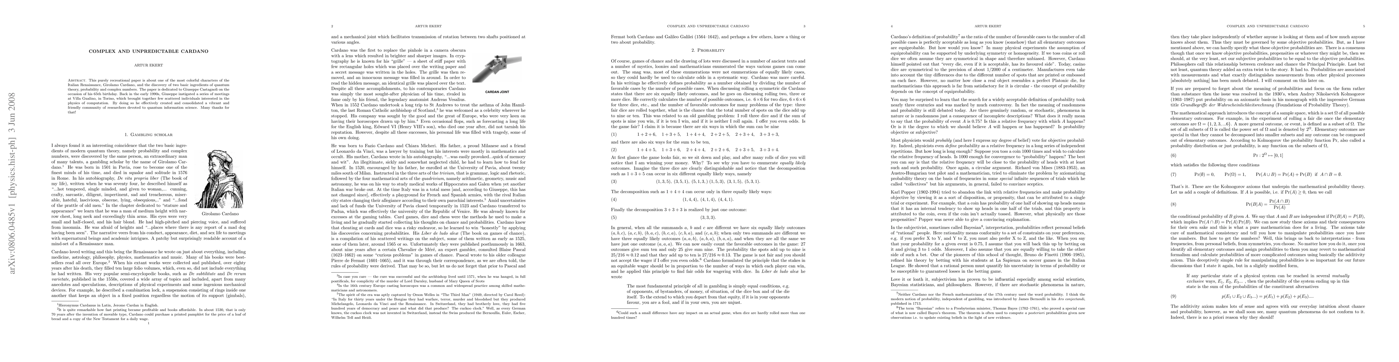 This purely recreational paper is about one of the most colorful characters of the Italian Renaissance, Girolamo Cardano, and the discovery of two basic ingredients of quantum theory, probability and complex numbers. The paper is dedicated to Giuseppe Castagnoli on the occasion of his 65th birthday. Back in the early 1990s, Giuseppe instigated a series of meetings at Villa Gualino, in Torino, which brought together few scattered individuals interested in the physics of computation. By doing so he effectively created and consolidated a vibrant and friendly community of researchers devoted to quantum information science. Many thanks for that!