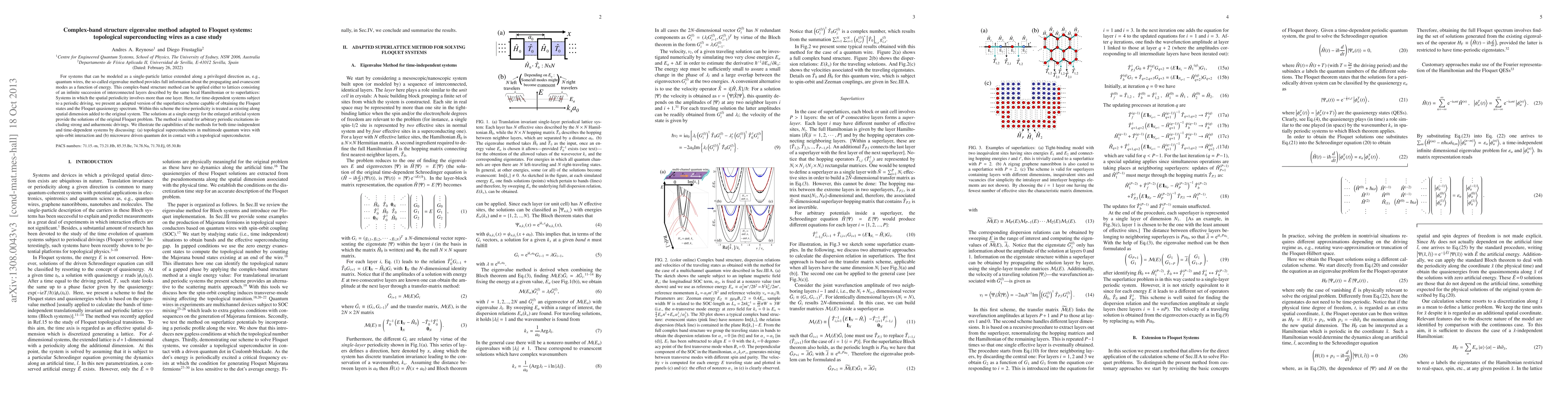 For systems that can be modeled as a single-particle lattice extended along a privileged direction as, e.g., quantum wires, the so-called eigenvalue method provides full information about the propagating and evanescent modes as a function of energy. This complex-band structure method can be applied either to lattices consisting of an infinite succession of interconnected layers described by the same local Hamiltonian or to superlattices: Systems in which the spatial periodicity involves more than one layer. Here, for time-dependent systems subject to a periodic driving, we present an adapted version of the superlattice scheme capable of obtaining the Floquet states and the Floquet quasienergy spectrum. Within this scheme the time periodicity is treated as existing along spatial dimension added to the original system. The solutions at a single energy for the enlarged artificial system provide the solutions of the original Floquet problem. The method is suited for arbitrary periodic excitations including strong and anharmonic drivings. We illustrate the capabilities of the methods for both time-independent and time-dependent systems by discussing: (a) topological superconductors in multimode quantum wires with spin-orbit interaction and (b) microwave driven quantum dot in contact with a topological superconductor.