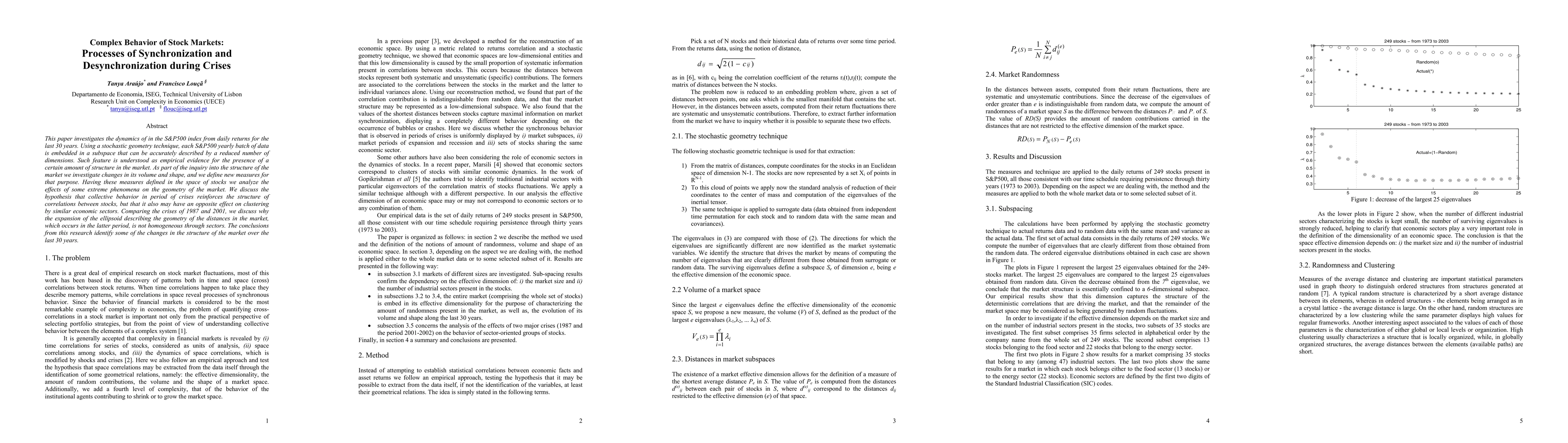 The research used a stochastic geometry technique to embed S&P500 yearly batches of data in subspace for analysis.
