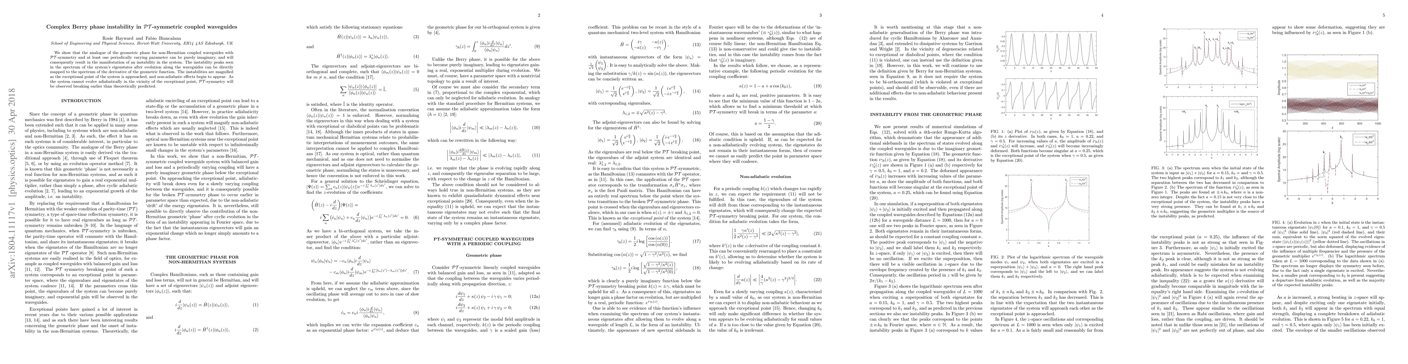 Research shows that PT-symmetric coupled waveguides with specific parameters can exhibit complex instability due to a purely imaginary geometric phase, which breaks earlier than predicted.
