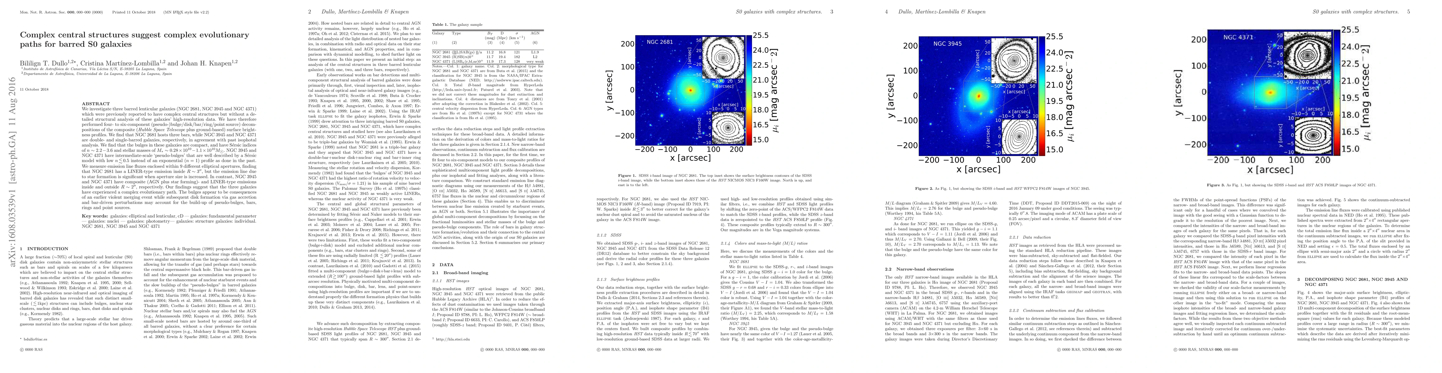 This study analyzes three barred lenticular galaxies with complex central structures, revealing multiple bars and pseudo-bulges. The findings suggest these galaxies experienced complex evolutionary paths, with earlier merging events forming bulges and later processes like gas accretion and bar-driven perturbations contributing to their current structures.