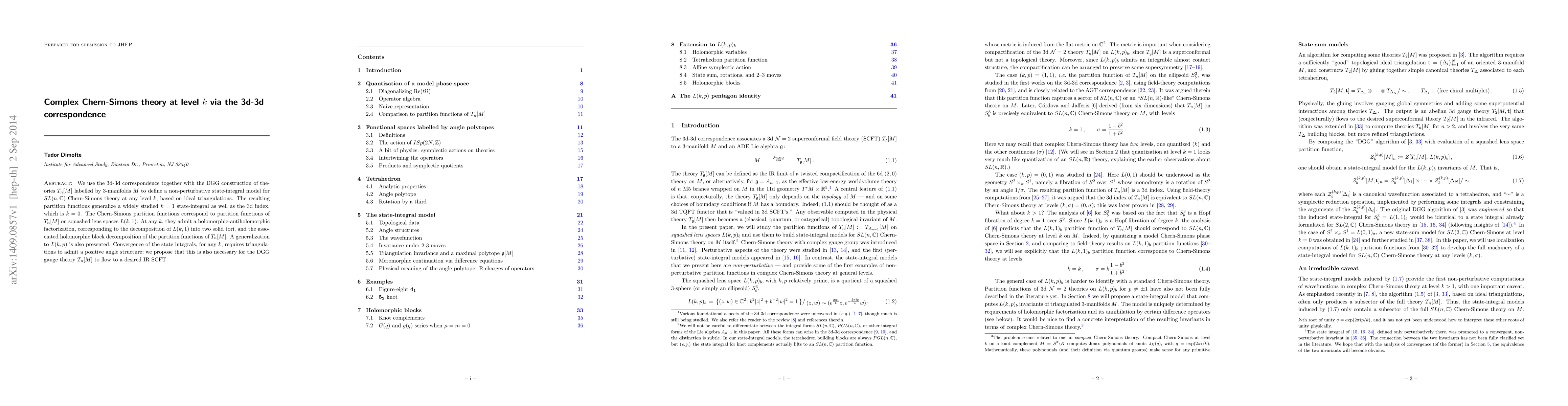 We use the 3d-3d correspondence together with the DGG construction of theories $T_n[M]$ labelled by 3-manifolds M to define a non-perturbative state-integral model for SL(n,C) Chern-Simons theory at any level k, based on ideal triangulations. The resulting partition functions generalize a widely studied k=1 state-integral as well as the 3d index, which is k=0. The Chern-Simons partition functions correspond to partition functions of $T_n[M]$ on squashed lens spaces L(k,1). At any k, they admit a holomorphic-antiholomorphic factorization, corresponding to the decomposition of L(k,1) into two solid tori, and the associated holomorphic block decomposition of the partition functions of T_n[M]. A generalization to L(k,p) is also presented. Convergence of the state integrals, for any k, requires triangulations to admit a positive angle structure; we propose that this is also necessary for the DGG gauge theory T_n[M] to flow to a desired IR SCFT.
