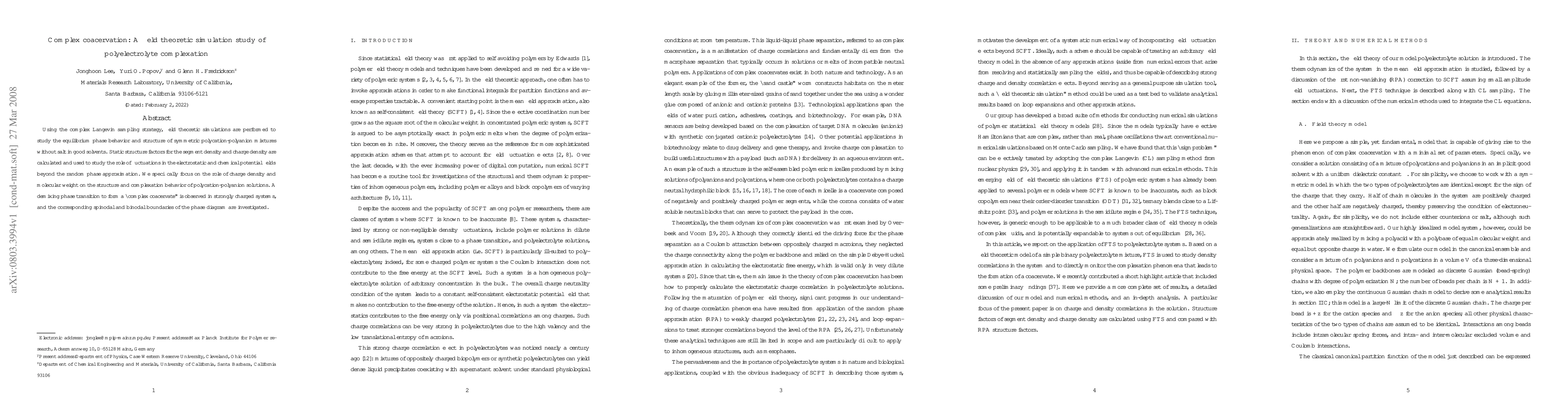 This study employs field theoretic simulations to investigate the equilibrium phase behavior and structure of polyelectrolyte complexes using complex Langevin sampling. It reveals a demixing phase transition leading to complex coacervate formation in strongly charged systems, with a focus on the influence of charge density and molecular weight on complexation behavior.
