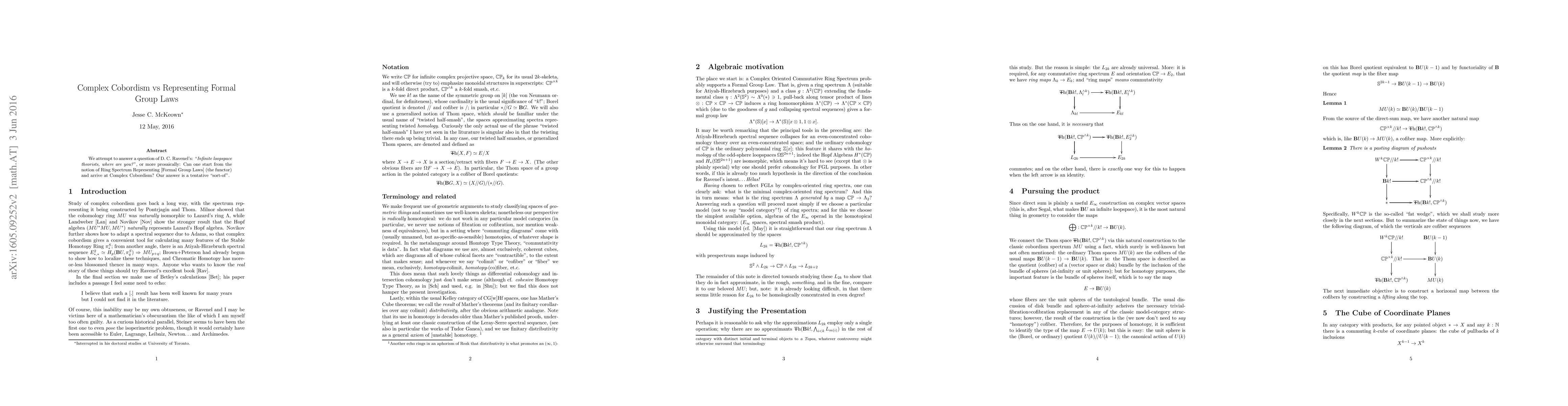 Researchers explore the connection between Complex Cobordism and Ring Spectrum Representing Formal Group Laws, finding a tentative affirmative answer that Complex Cobordism can be approached from this formal group law perspective.