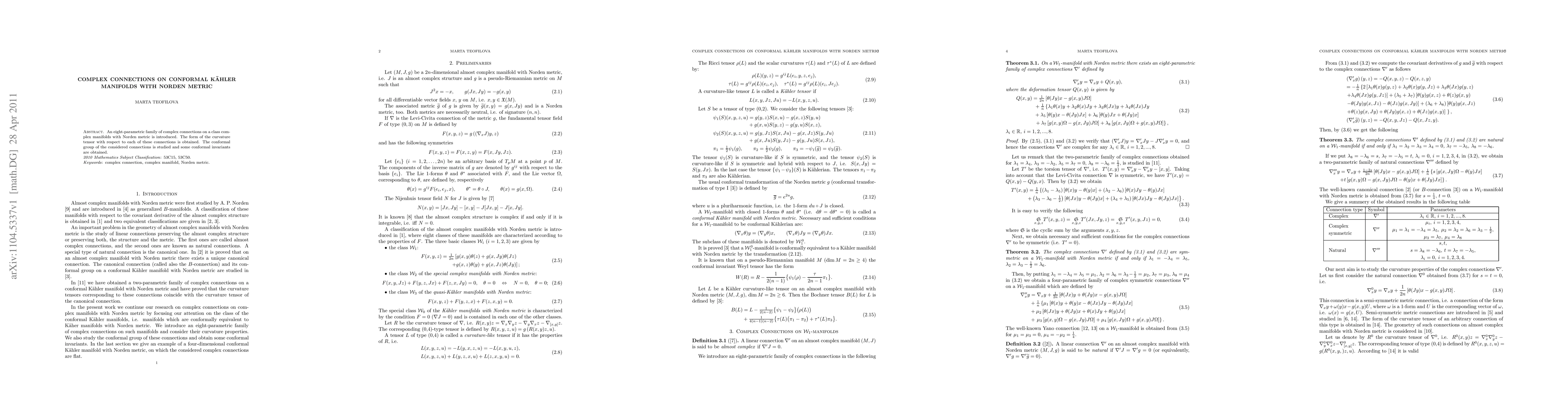 Researchers introduced an eight-parametric family of complex connections on conformal K"ahler manifolds with Norden metric, studying the form of curvature tensors and conformal invariants.