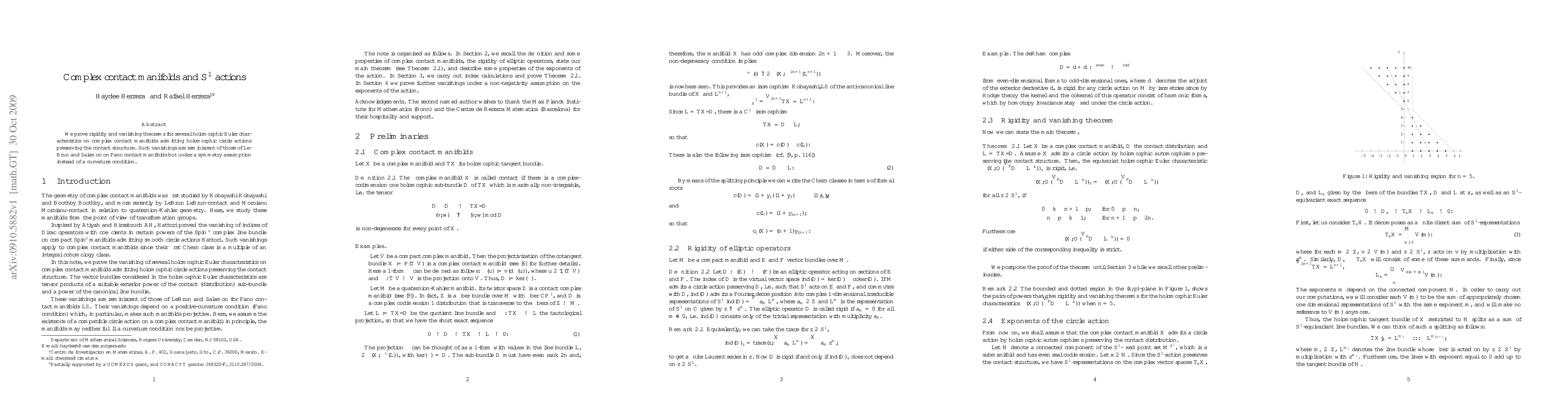 Summary: This paper establishes rigidity and vanishing theorems for holomorphic Euler characteristics on complex contact manifolds with holomorphic circle actions, demonstrating results similar to those for Fano contact manifolds but based on symmetry rather than curvature conditions.
