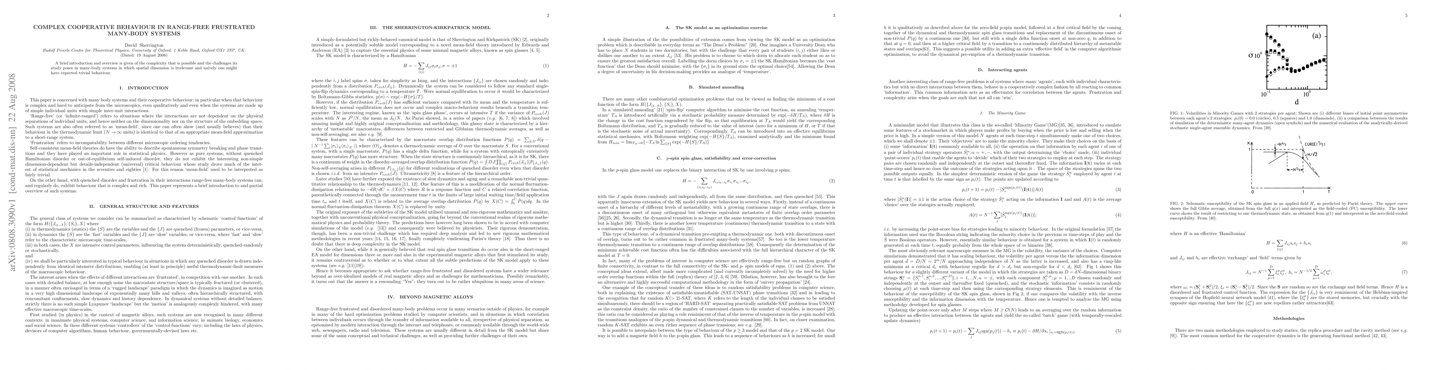 A brief introduction and overview is given of the complexity that is possible and the challenges its study poses in many-body systems in which spatial dimension is irrelevant and naively one might have expected trivial behaviour.