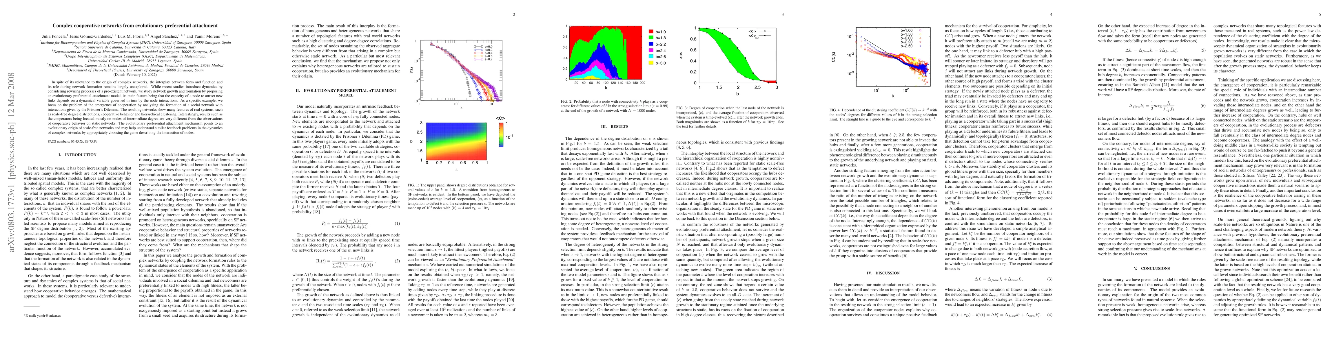 This paper proposes an evolutionary preferential attachment model to study network growth, where nodes' link attraction capacity depends on dynamic interaction variables. It demonstrates the emergence of cooperation in social networks modeled by the Prisoner's Dilemma, revealing scale-free structures and cooperative behavior, with cooperators predominantly on intermediate-degree nodes, differing from static network observations.