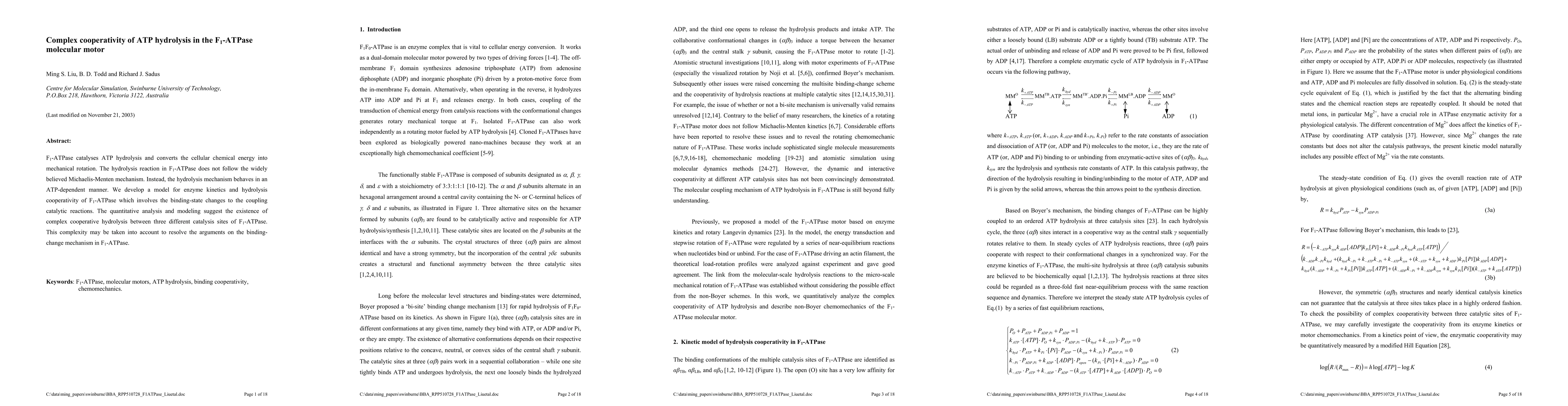 F1-ATPase breaks down ATP in a complex cooperative manner involving three catalysis sites, challenging the Michaelis-Menten mechanism. A new model suggests this cooperativity resolves long-standing debates on the binding change mechanism in F1-ATPase.