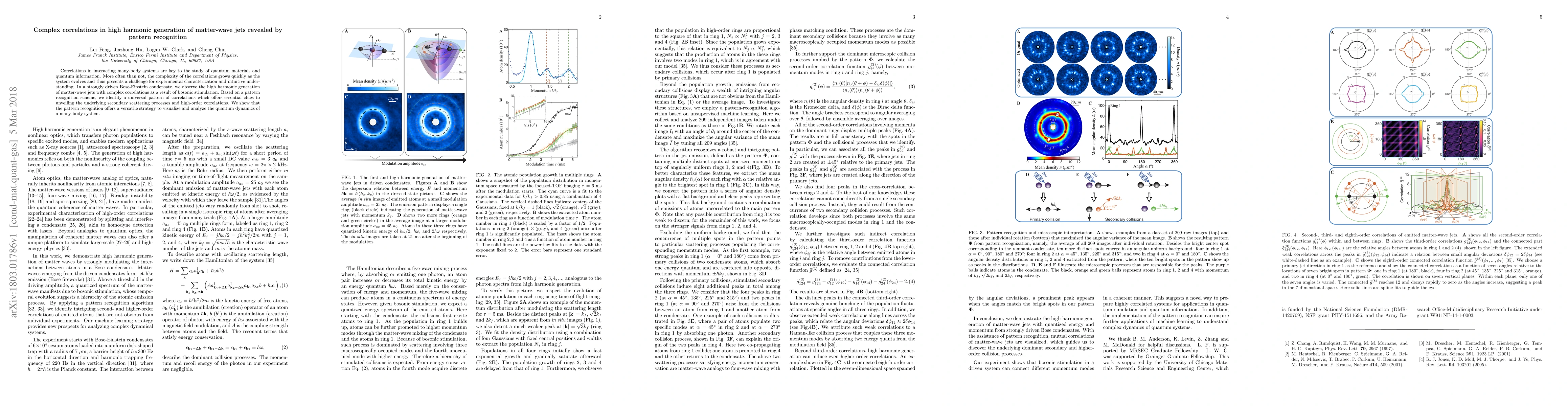 Correlations in interacting many-body systems are key to the study of quantum materials and quantum information. More often than not, the complexity of the correlations grows quickly as the system evolves and thus presents a challenge for experimental characterization and intuitive understanding. In a strongly driven Bose-Einstein condensate, we observe the high harmonic generation of matter-wave jets with complex correlations as a result of bosonic stimulation. Based on a pattern recognition scheme, we identify a universal pattern of correlations which offers essential clues to unveiling the underlying secondary scattering processes and high-order correlations. We show that the pattern recognition offers a versatile strategy to visualize and analyze the quantum dynamics of a many-body system.