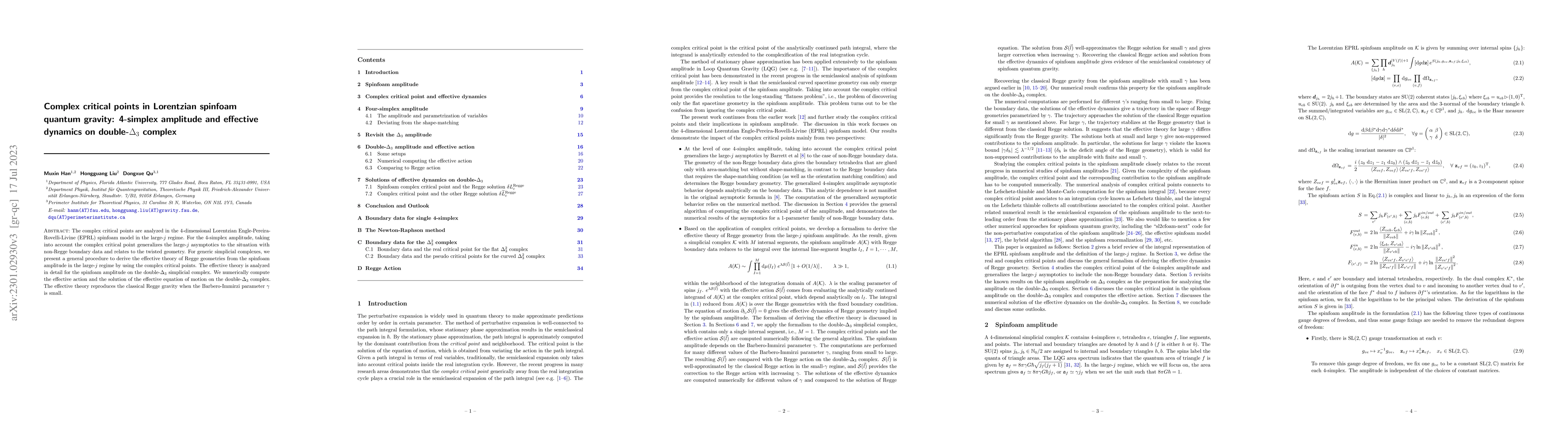The paper analyzes complex critical points in the EPRL spinfoam model to generalize large-$j$ asymptotics for non-Regge boundary data and derive an effective theory for Regge geometries. The effective theory on a double-$\Delta_3$ complex reproduces classical Regge gravity under small Barbero-Immirzi parameters.