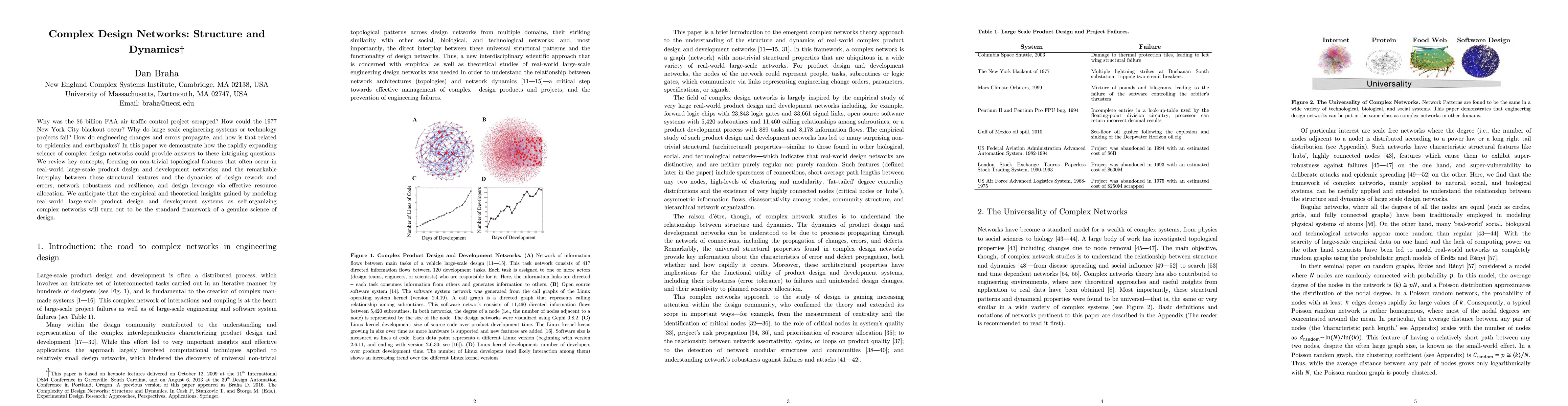 This paper explores complex design networks to understand how large-scale engineering projects fail, using insights from network science to develop a framework for the study of design.