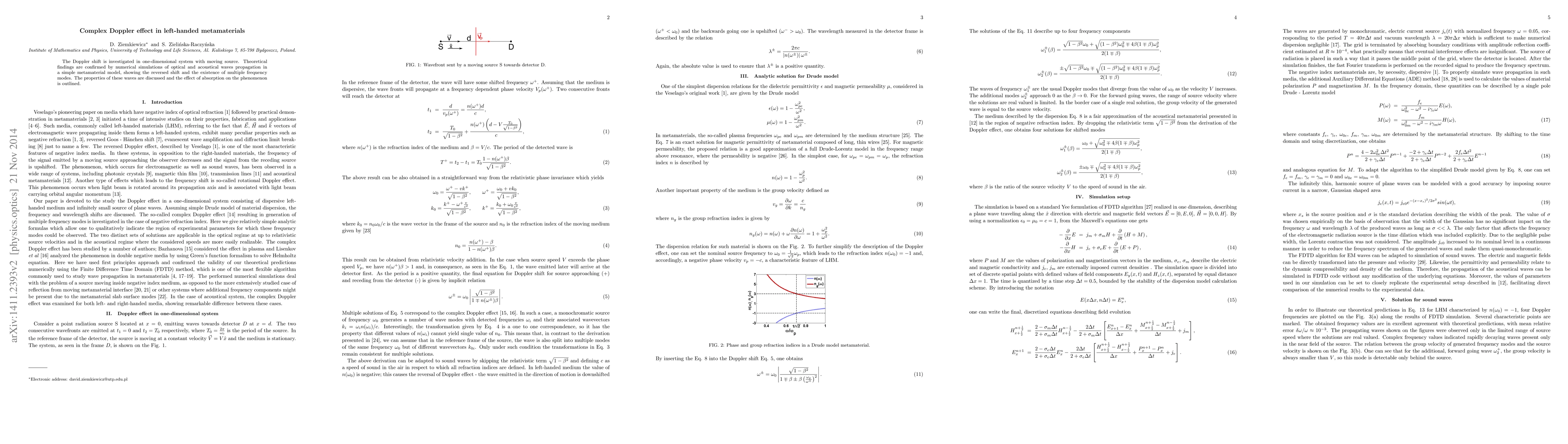 Researchers studied how moving sources affect sound waves in left-handed metamaterials, finding a reversed Doppler shift and multiple frequency modes. The findings have implications for understanding wave behavior in these materials.