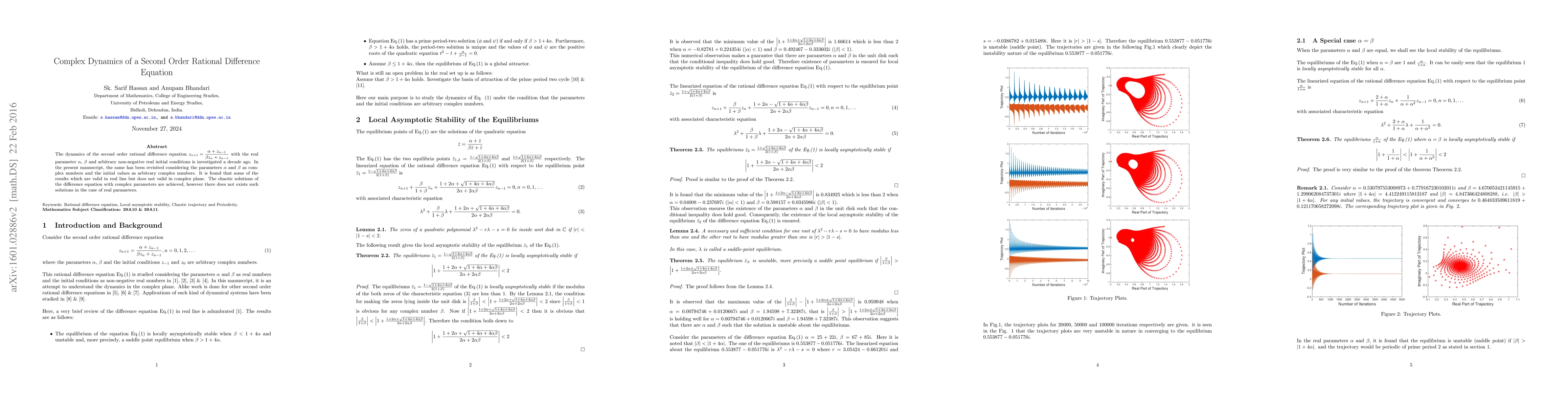 This paper revisits the dynamics of a second order rational difference equation with complex parameters and initial conditions, revealing that chaotic solutions emerge in the complex domain, unlike the real domain where such solutions do not exist.