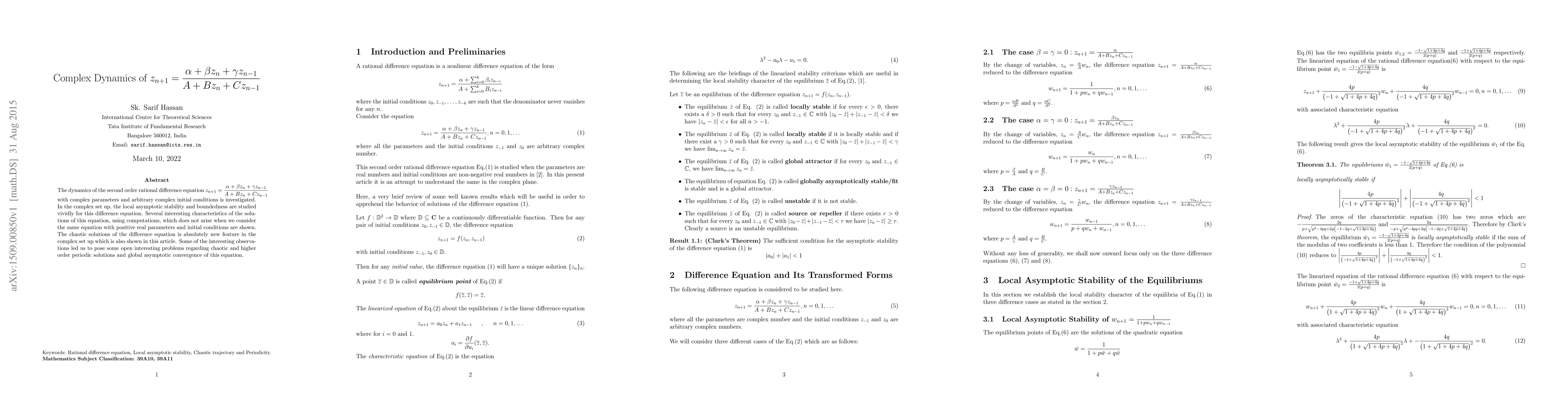 This paper investigates the complex dynamics of a second-order rational difference equation, exploring local asymptotic stability, boundedness, and chaotic solutions in the complex domain. It reveals novel characteristics and chaotic behaviors not observed in the real parameter setup.