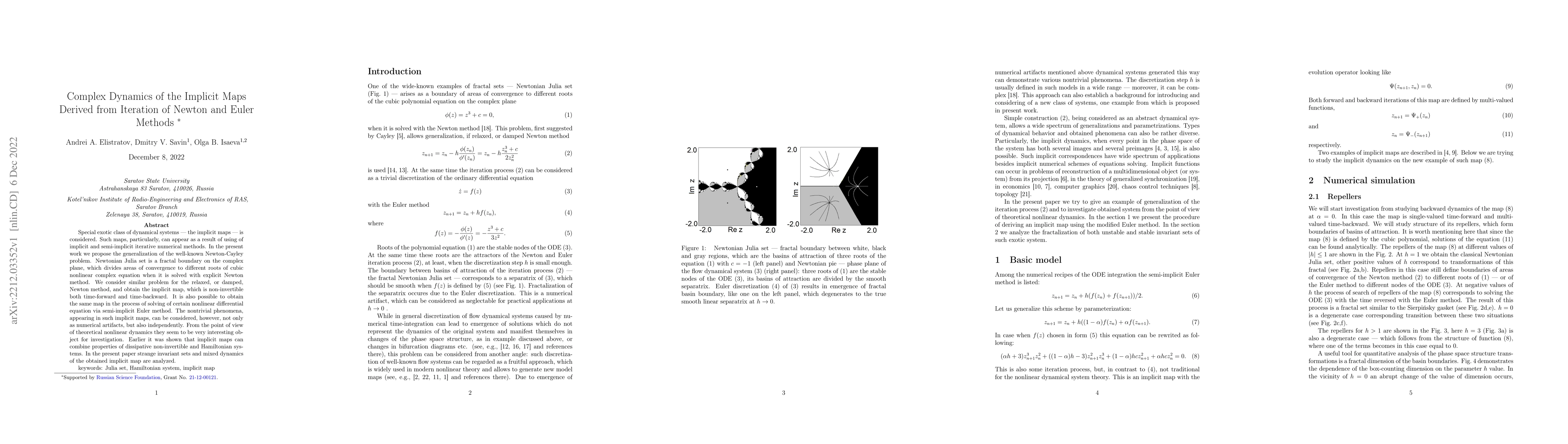 This paper investigates the complex dynamics of implicit maps derived from the iteration of Newton and Euler methods, focusing on the non-invertible nature and strange invariant sets of these maps. It also explores the mixed dynamics and phenomena arising from these maps, highlighting their significance in theoretical nonlinear dynamics.