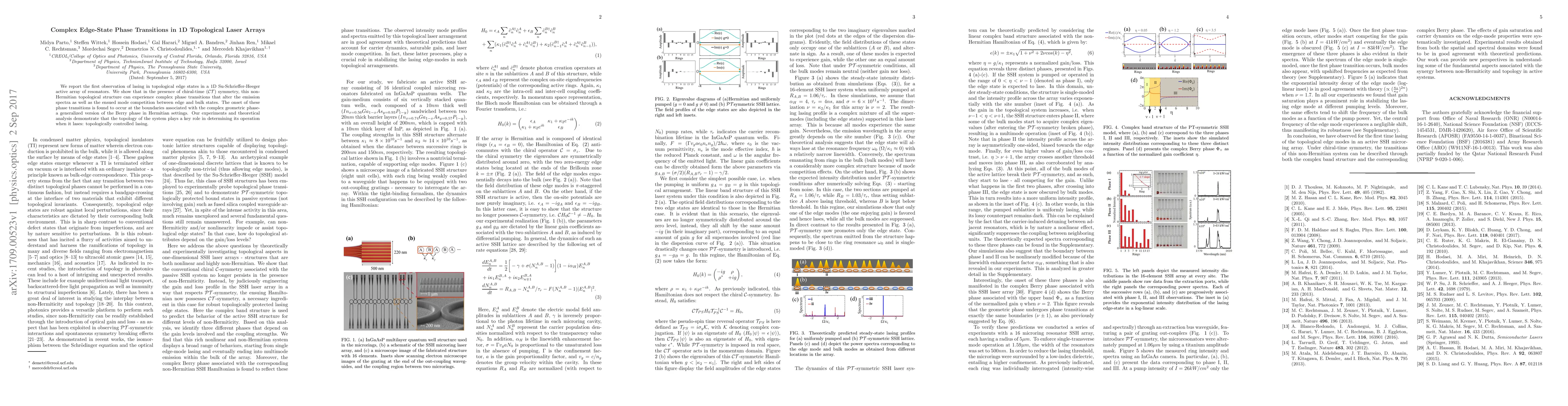 We report the first observation of lasing in topological edge states in a 1D Su-Schrieffer-Heeger active array of resonators. We show that in the presence of chiral-time ($\mathcal{CT}$) symmetry, this non-Hermitian topological structure can experience complex phase transitions that alter the emission spectra as well as the ensued mode competition between edge and bulk states. The onset of these phase transitions is found to occur at the boundaries associated with the complex geometric phase- a generalized version of the Berry phase in Hermitian settings. Our experiments and theoretical analysis demonstrate that the topology of the system plays a key role in determining its operation when it lases: topologically controlled lasing.