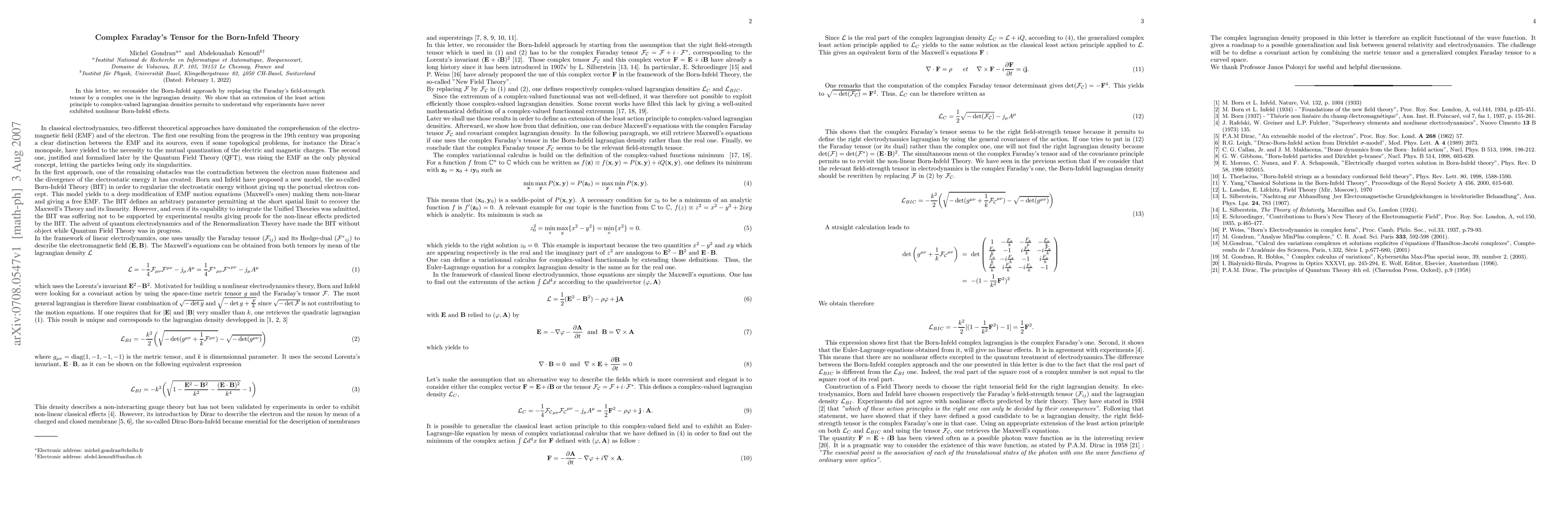 This paper extends the Born-Infeld theory by introducing a complex Faraday tensor in the Lagrangian, demonstrating that this modification allows for a deeper understanding of why nonlinear effects predicted by the theory have not been observed experimentally.