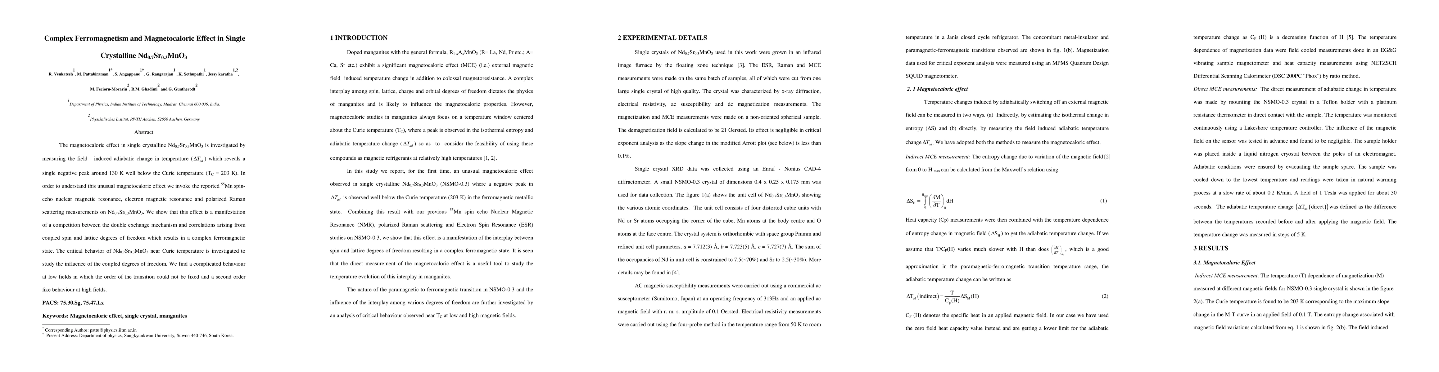 This study investigates the magnetocaloric effect in single crystalline Nd_{0.7}Sr_{0.3}MnO_{3}, revealing a peak in the adiabatic temperature change below the Curie temperature. The effect is attributed to a complex ferromagnetic state resulting from competition between double exchange and coupled spin-lattice interactions.