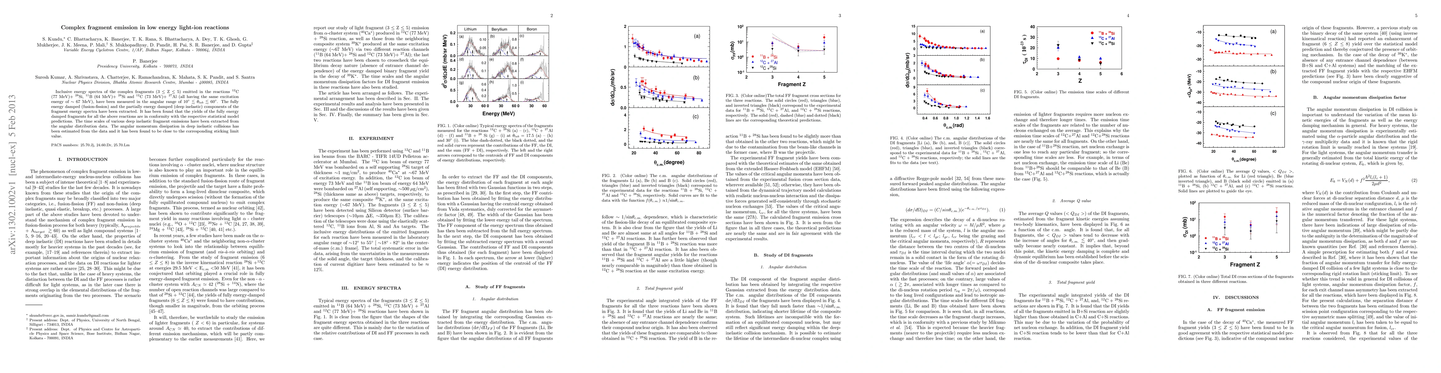 Researchers measured inclusive energy spectra of complex fragments in low-energy light-ion reactions, confirming statistical model predictions for fully energy-damped fragments and estimating angular momentum dissipation in deep inelastic collisions.