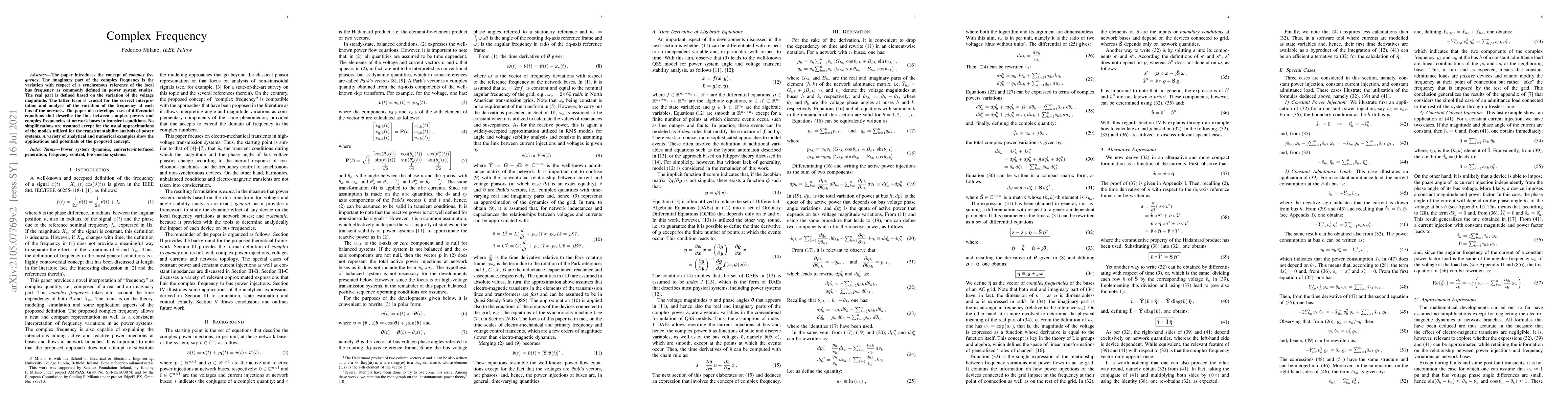 The paper develops differential equations for linking complex powers and complex frequencies in transient conditions, offering a detailed approach to understanding power system dynamics.