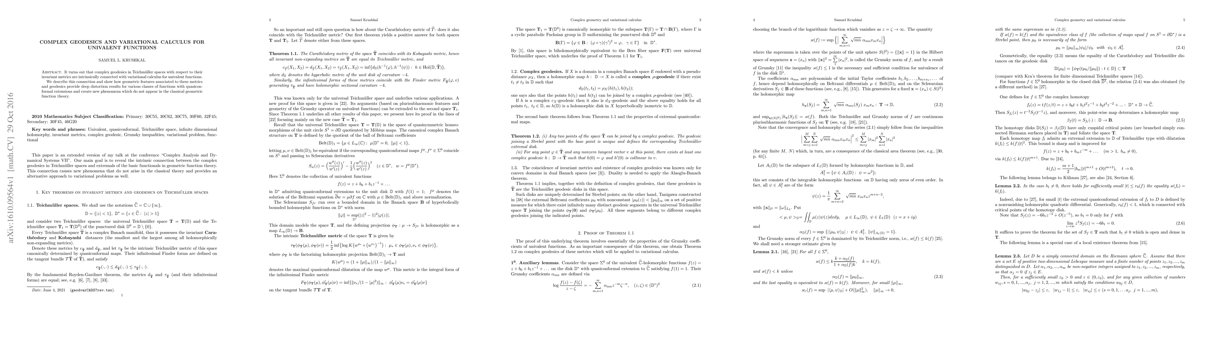 This paper explores the intrinsic link between complex geodesics in Teichmüller spaces and variational calculus for univalent functions, revealing how these connections lead to novel distortion results for quasiconformal functions and phenomena not found in traditional geometric function theory.