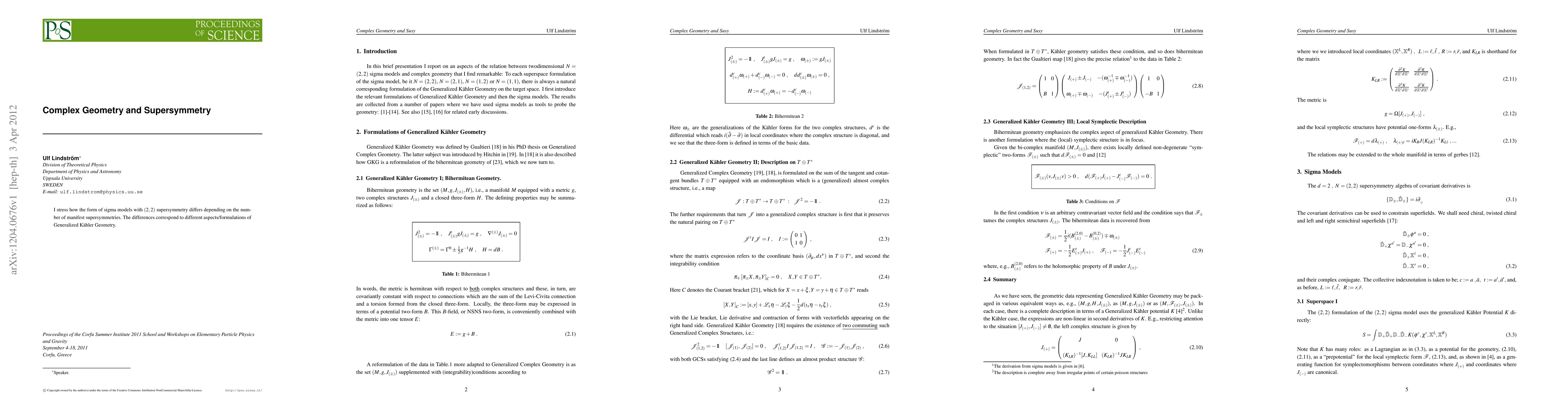 I stress how the form of sigma models with (2, 2) supersymmetry differs depending on the number of manifest supersymmetries. The differences correspond to different aspects/formulations of Generalized K\"ahler Geometry.