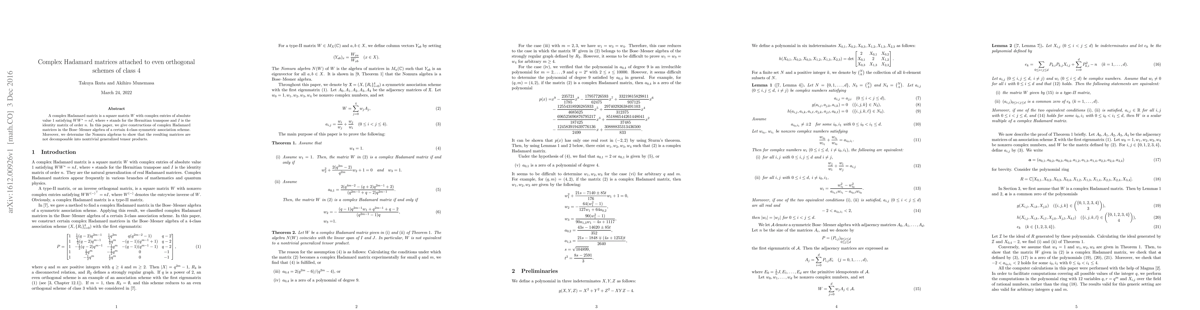 A complex Hadamard matrix is a square matrix W with complex entries of absolute value 1 satisfying WW*=nI, where * stands for the Hermitian transpose and I is the identity matrix of order n. In this paper, we give constructions of complex Hadamard matrices in the Bose-Mesner algebra of a certain 4-class symmetric association scheme. Moreover, we determine the Nomura algebras to show that the resulting matrices are not decomposable into nontrivial generalized tensor products.