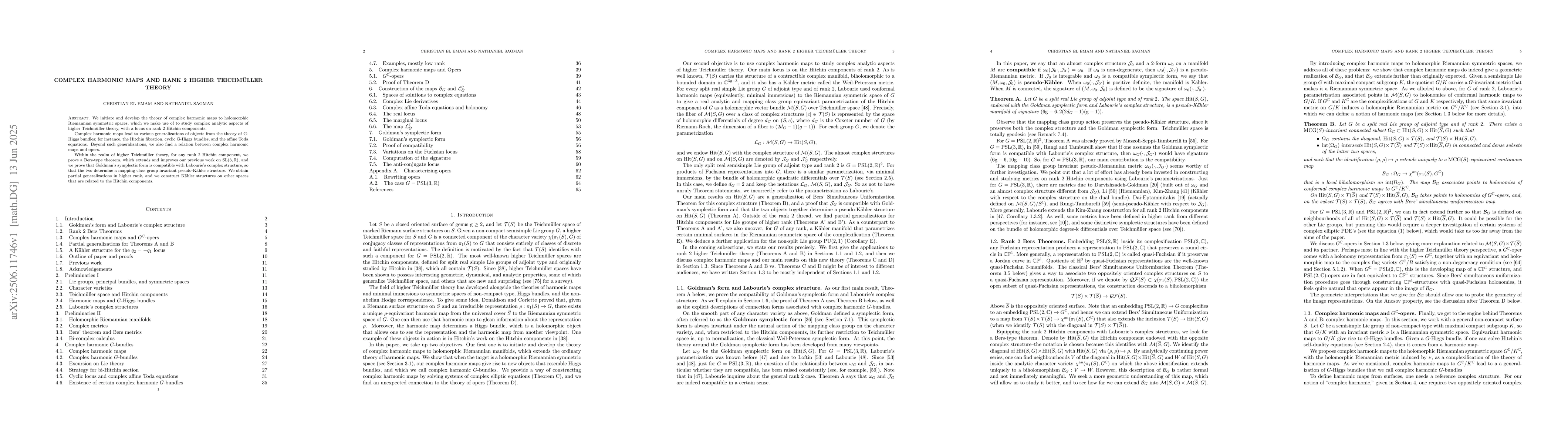 We initiate and develop the theory of complex harmonic maps to holomorphic Riemannian symmetric spaces, which we make use of to study complex analytic aspects of higher Teichm\"uller theory, with a focus on rank $2$ Hitchin components. Complex harmonic maps lead to various generalizations of objects from the theory of Higgs bundles; for instance, the Hitchin fibration, cyclic Higgs bundles, and the affine Toda equations. Beyond such generalizations, we also find a relation between complex harmonic maps and opers. Within the realm of higher Teichm\"uller theory, for any rank $2$ Hitchin component, we prove a Bers-type theorem, which extends and improves our previous work on $\mathrm{SL}(3,\mathbb R)$, and we prove that Goldman's symplectic form is compatible with Labourie's complex structure, so that the two determine a mapping class group invariant pseudo-K\"ahler structure. We obtain partial generalizations in higher rank, and we construct K\"ahler structures on other spaces that are related to the Hitchin components.
