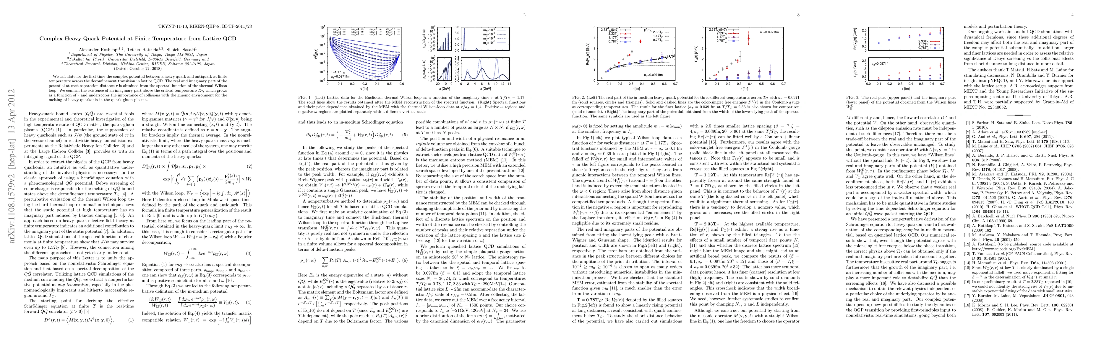 We calculate for the first time the complex potential between a heavy quark and antiquark at finite temperature across the deconfinement transition in lattice QCD. The real and imaginary part of the potential at each separation distance $r$ is obtained from the spectral function of the thermal Wilson loop. We confirm the existence of an imaginary part above the critical temperature $T_C$, which grows as a function of $r$ and underscores the importance of collisions with the gluonic environment for the melting of heavy quarkonia in the quark-gluon-plasma.