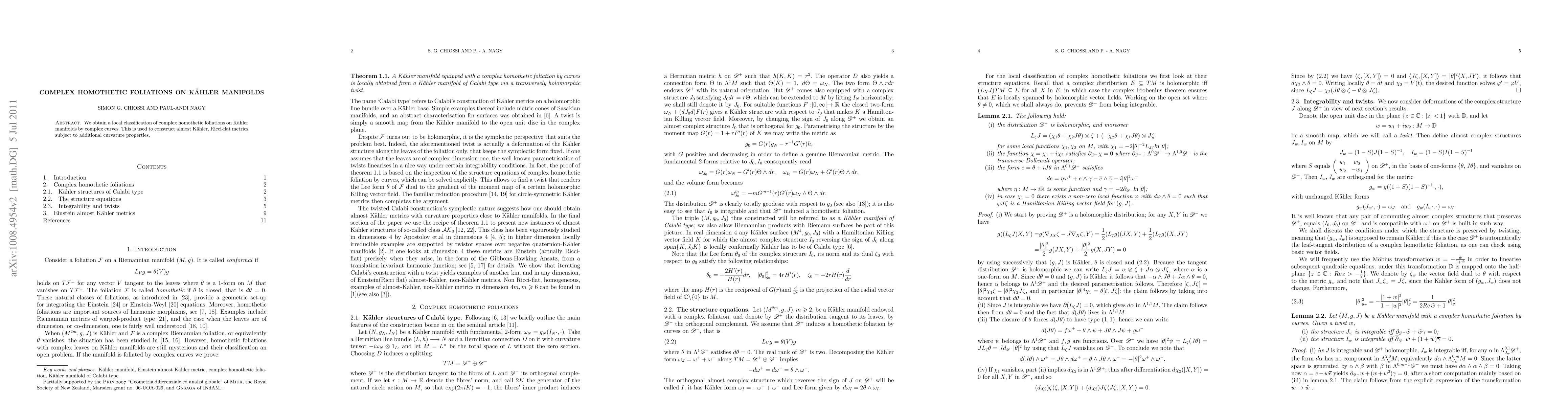 Summary: This paper classifies complex homothetic foliations on Kähler manifolds by curves and utilizes this classification to construct almost Kähler, Ricci-flat metrics with specific curvature conditions.