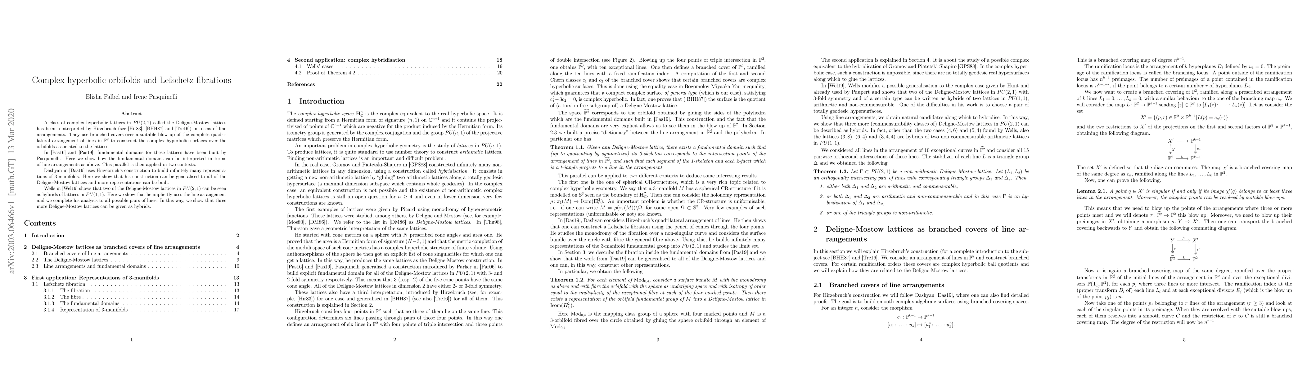 Researchers show that complex hyperbolic orbifolds can be represented as line arrangements in projective 2-space, generalizing a previous construction to more lattices and revealing new hybrids.