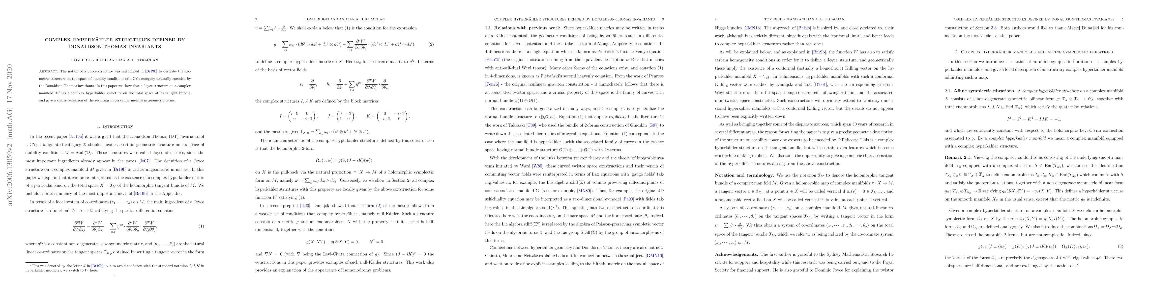 A Joyce structure defines a complex hyperk"ahler structure on the total space of its tangent bundle, and provides a characterization of resulting hyperk"ahler metrics in geometric terms.
