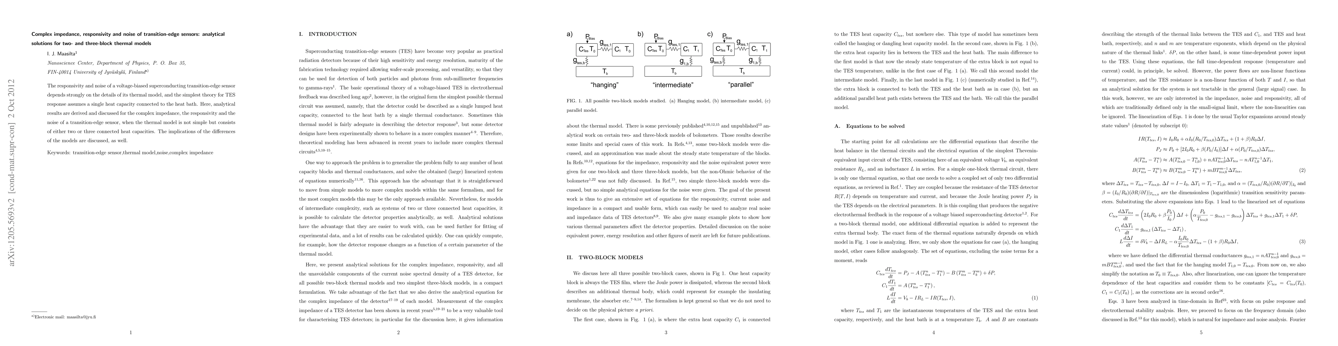 This paper derives analytical solutions for the complex impedance, responsivity, and noise of voltage-biased superconducting transition-edge sensors (TES) when considering two- and three-block thermal models, rather than the simplest single-block model. The study discusses the implications of these more complex thermal models on sensor performance.