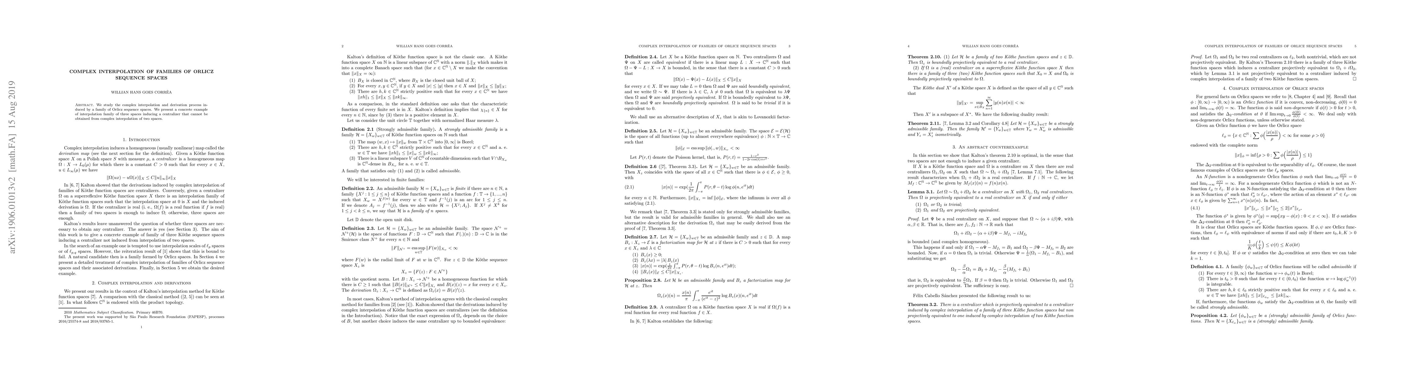 This paper investigates the complex interpolation and derivation processes for families of Orlicz sequence spaces, demonstrating a specific instance where a three-space interpolation family generates a centralizer not achievable through interpolation of just two spaces.