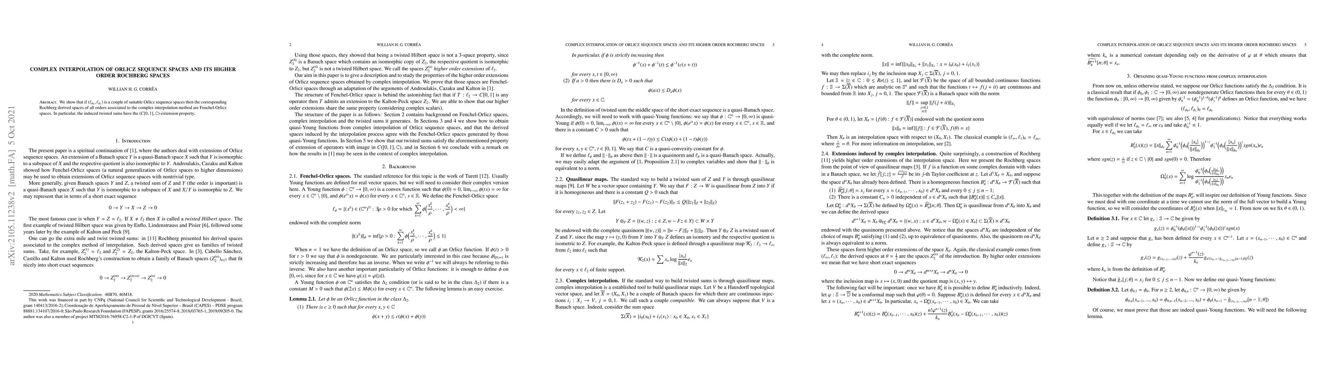 This paper demonstrates that complex interpolation of suitable Orlicz sequence spaces results in Rochberg derived spaces of all orders that are Fenchel-Orlicz spaces, and these twisted sums exhibit the $(C[0, 1], \mathbb{C})$-extension property.
