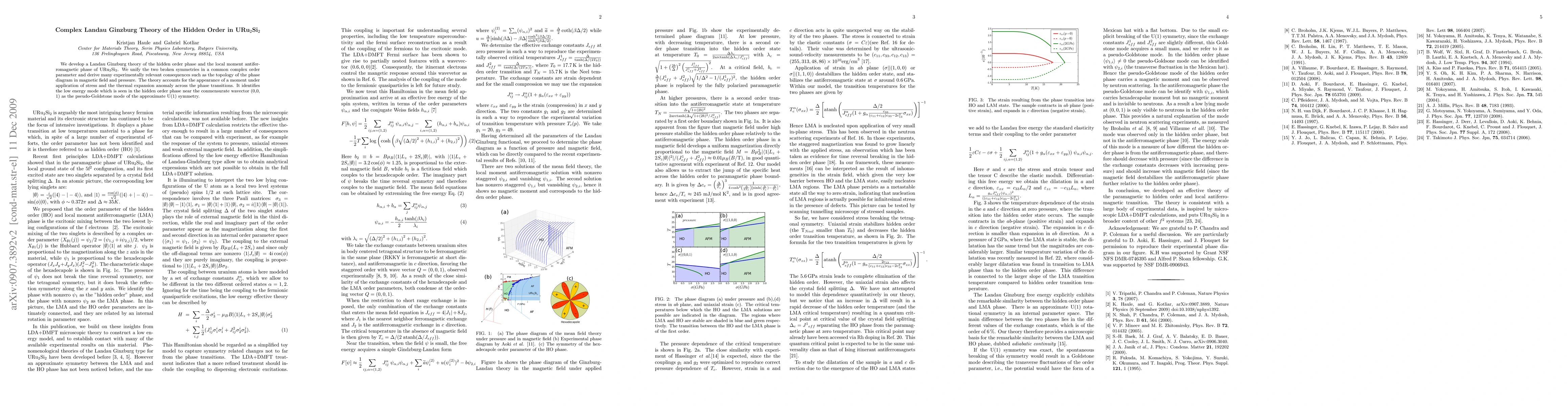 Researchers develop a complex Landau Ginzburg theory to explain URu_2Si_2's hidden order phase and local magnetic moments, predicting experimentally relevant consequences such as phase diagram topology and thermal expansion anomalies.