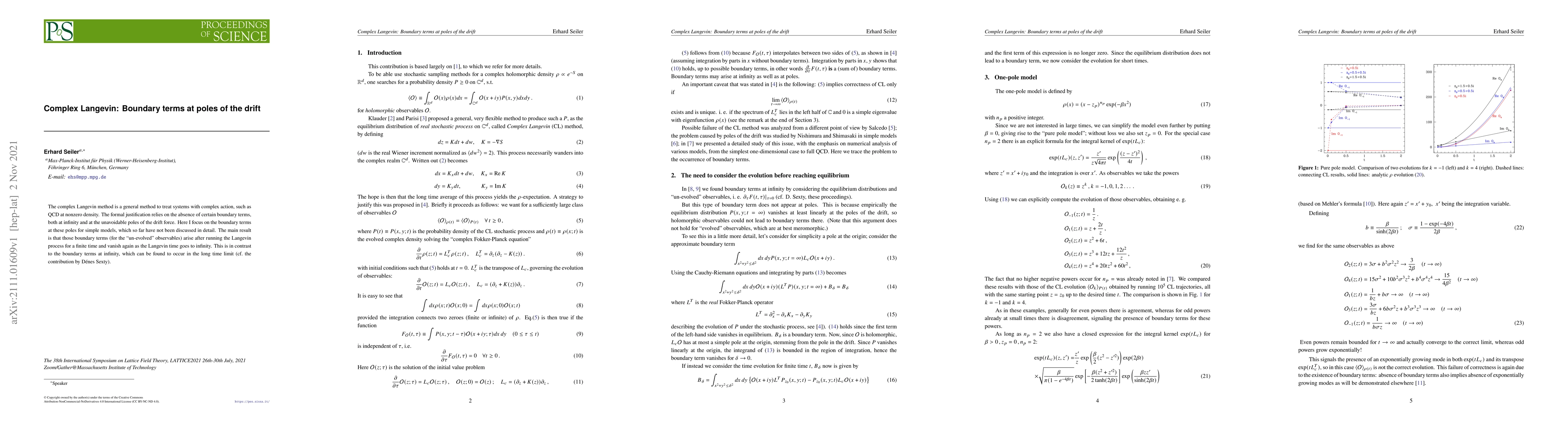 The complex Langevin method addresses systems with complex action, like QCD at nonzero density, but boundary terms at poles of the drift force have not been thoroughly examined. The study reveals that these boundary terms for "un-evolved" observables emerge after a finite Langevin process but disappear as the process runs indefinitely.