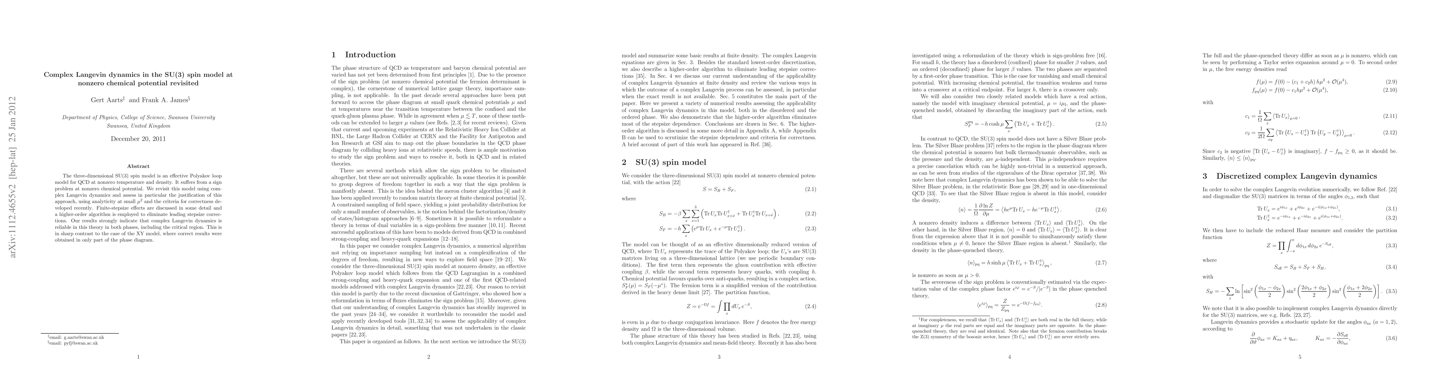 The three-dimensional SU(3) spin model is an effective Polyakov loop model for QCD at nonzero temperature and density. It suffers from a sign problem at nonzero chemical potential. We revisit this model using complex Langevin dynamics and assess in particular the justification of this approach, using analyticity at small mu^2 and the criteria for correctness developed recently. Finite-stepsize effects are discussed in some detail and a higher-order algorithm is employed to eliminate leading stepsize corrections. Our results strongly indicate that complex Langevin dynamics is reliable in this theory in both phases, including the critical region. This is in sharp contrast to the case of the XY model, where correct results were obtained in only part of the phase diagram.