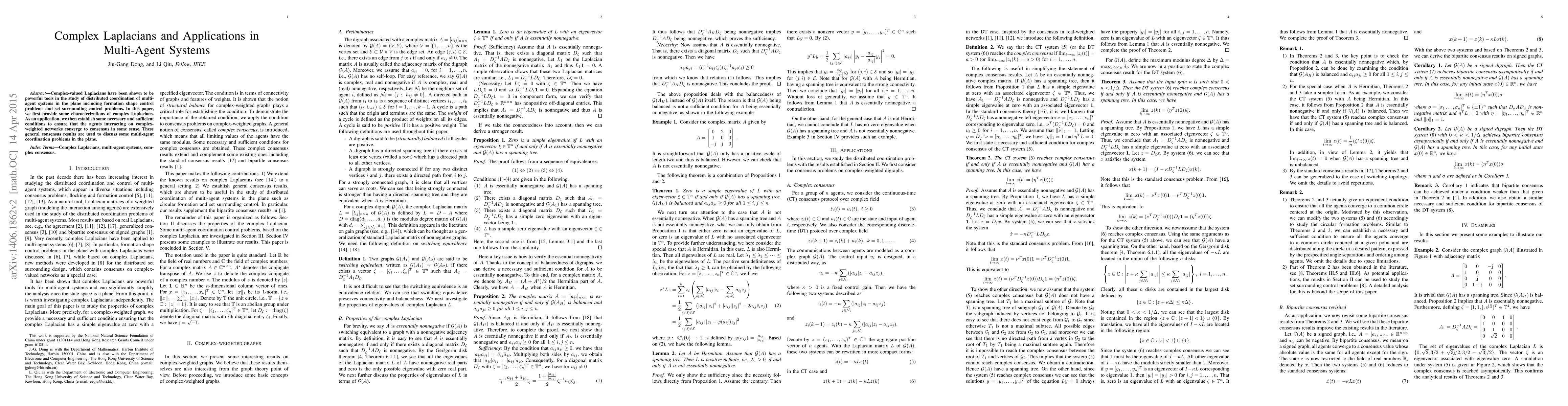 This paper characterizes complex-valued Laplacians and applies them to multi-agent systems, establishing conditions for consensus convergence on complex-weighted networks, and discusses their use in plane-based coordination problems.