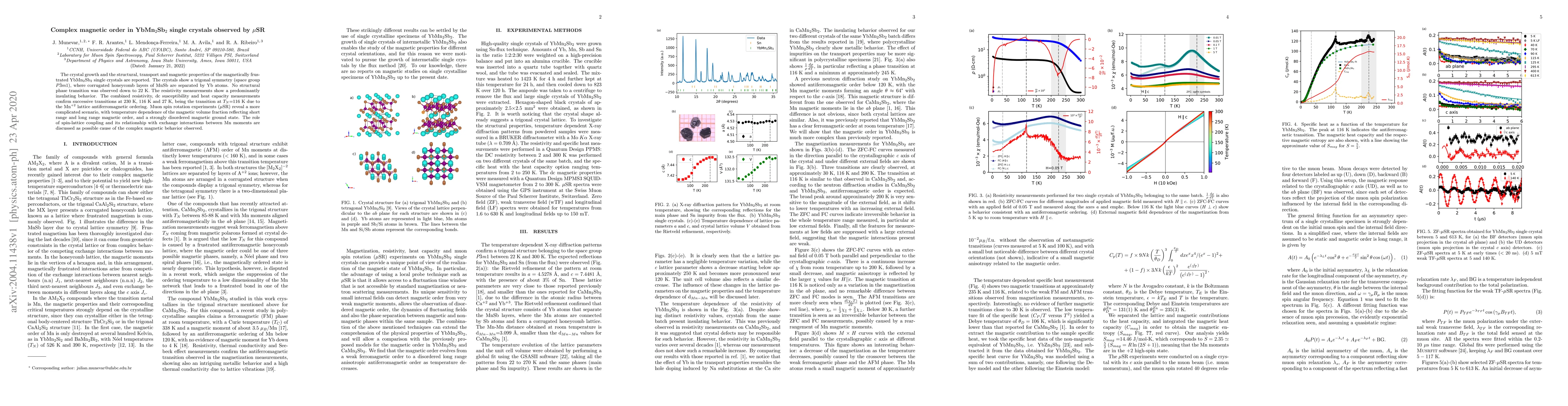 YbMn$_2$Sb$_2$ single crystals exhibit complex magnetic behavior with successive transitions at 230K, 116K, and 27K, and muon spin rotation experiments reveal a strongly disordered magnetic ground state.